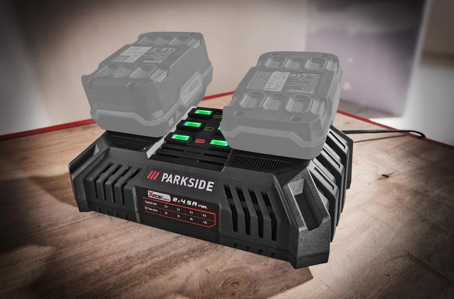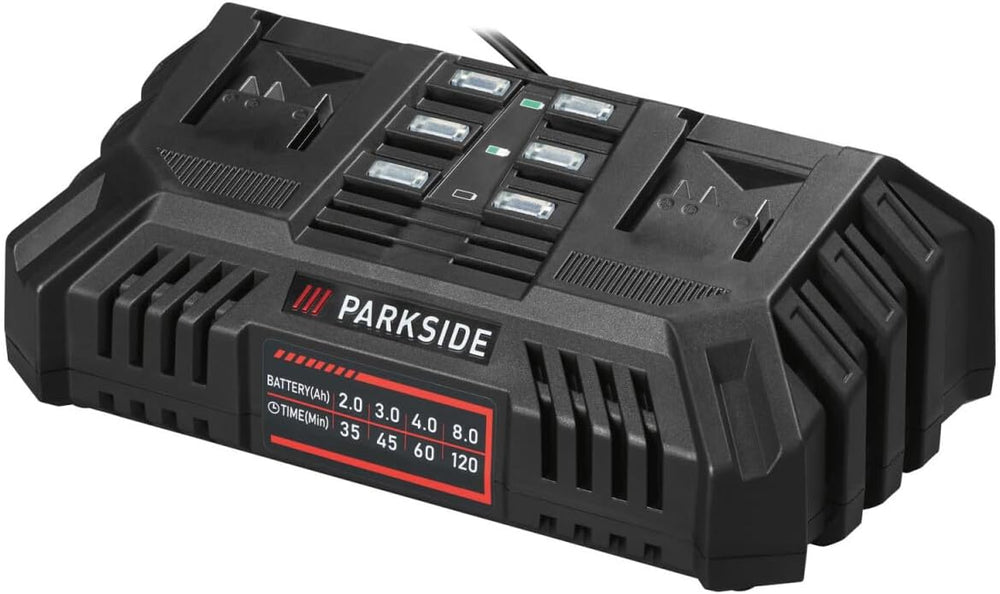PARKSIDE 30 Minuten Doppel Ladegerät PDSLG 20 mit 2 x Akku 8.0 Ah X20V Team und Performance Series