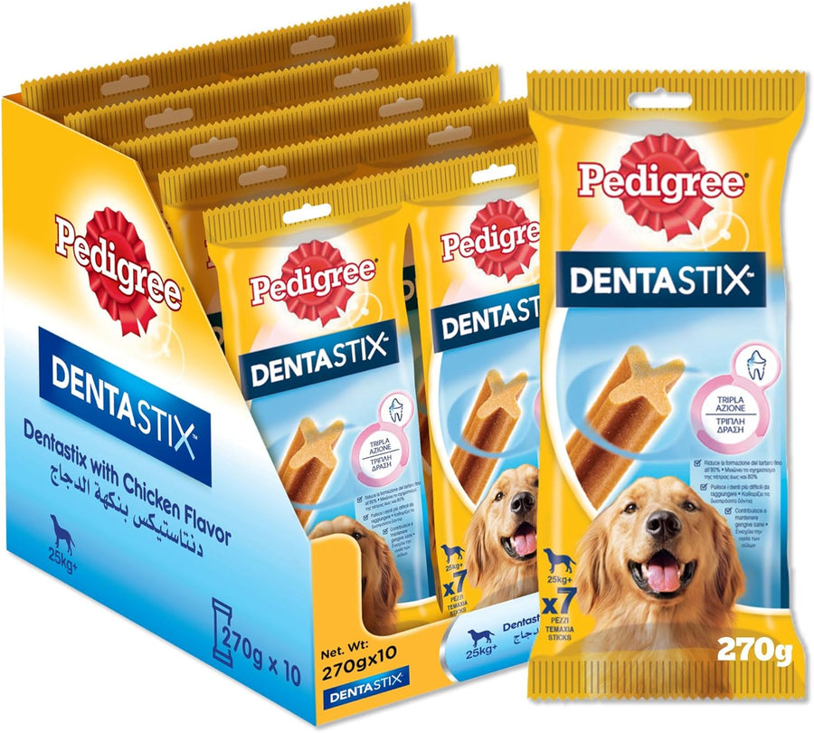 Pedigree DentaStix Daily Oral Care Zahnpflegesnack für grosse Hunde – Hundeleckerli mit Huhn- & Rind
