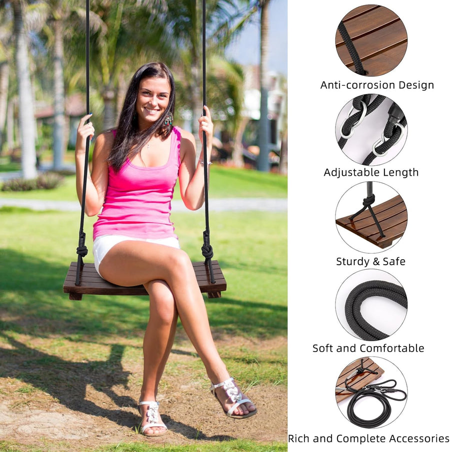 PELLOR Holzschaukel, Antikorrosive Schaukel Erwachsene Kinder Garten Schaukel, Hängeschaukelsitz für