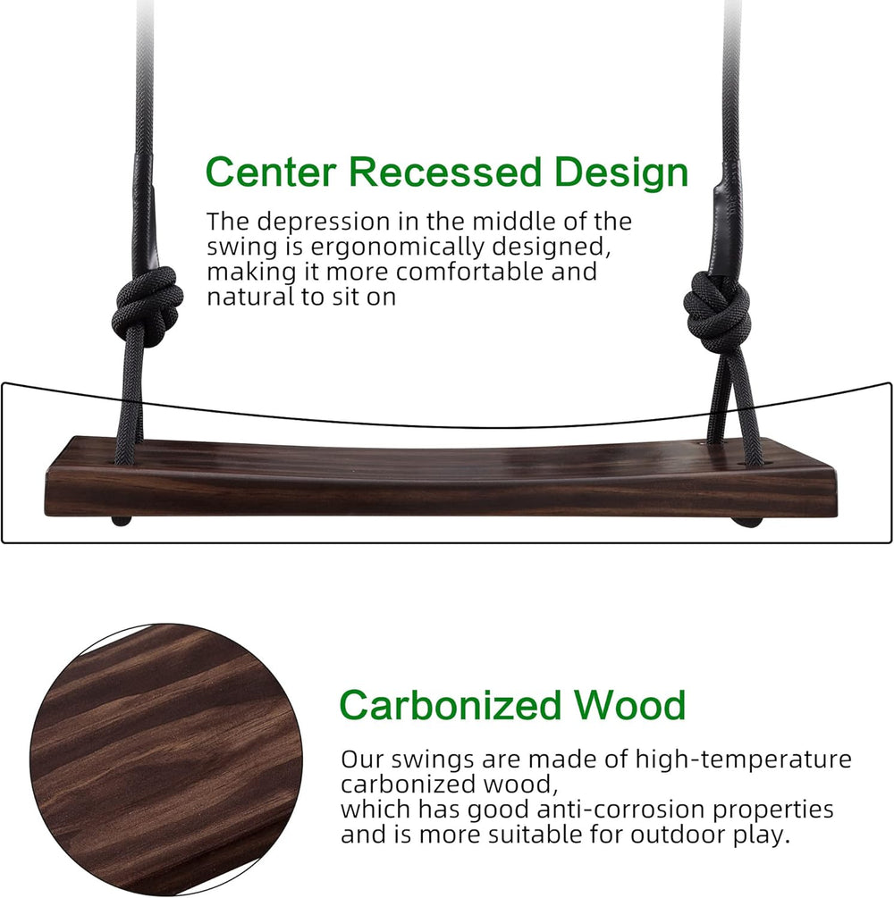 PELLOR Holzschaukelsitz, Antikorrosive Holzschaukel Baumschaukeln aus karbonisiertem Buchenholz mit