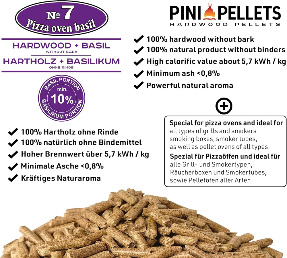 PINI Hartholzpellets № 7 BBQ Pizza Oven Basilikum 10 Kg Grillpellets zum Grillen Räuchern Smoken