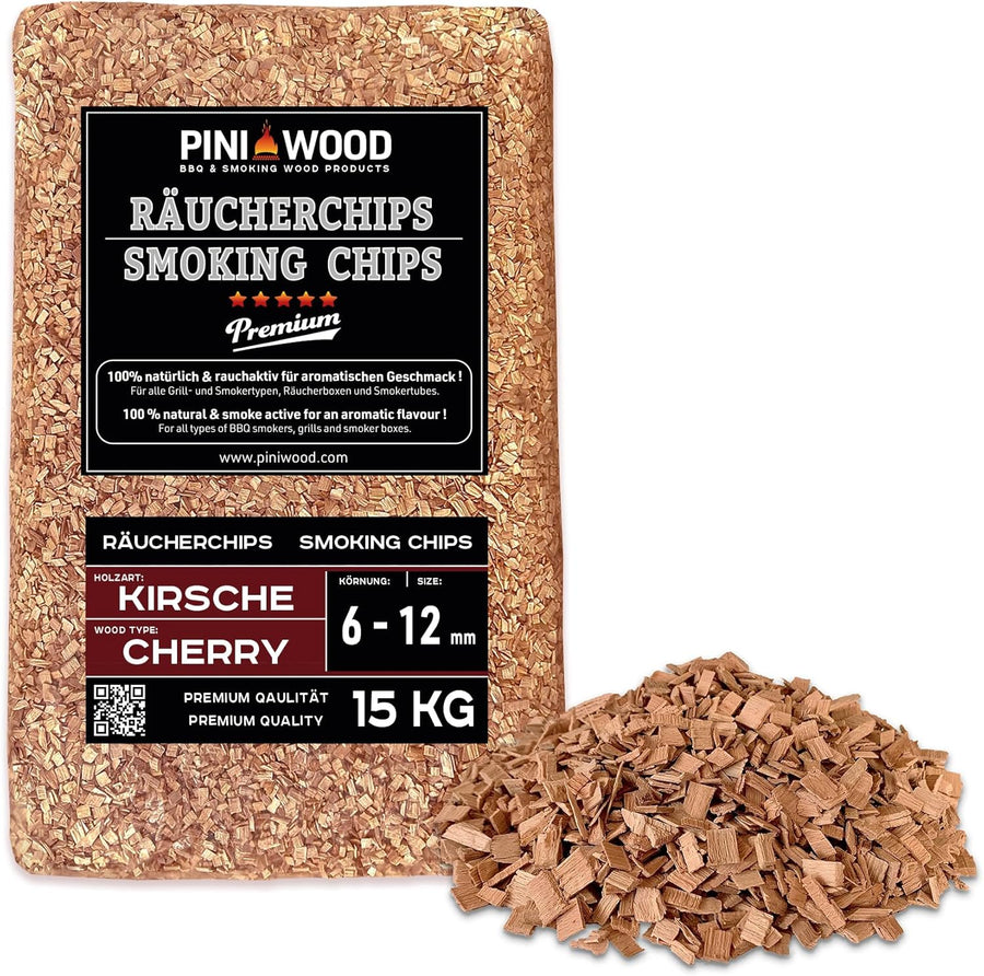 PINI 15 Kg Räucherchips Kirsche 6-12 mm Smoking Chips Räucherspäne