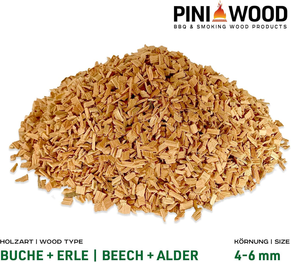 PINI 15 Kg Räucherchips Buche und Erle gemischt 6-12 mm Smoking Chips Räucherspäne