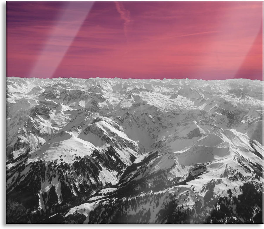 Alpen mit Schnee Herdabdeckplatte & Spritzschutz aus Echtglas | Für Herd-Kochfelder | 60x52 cm