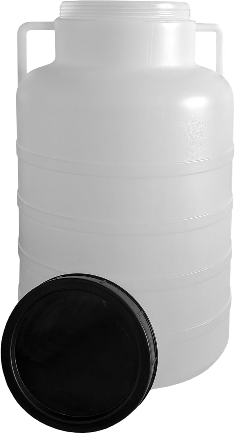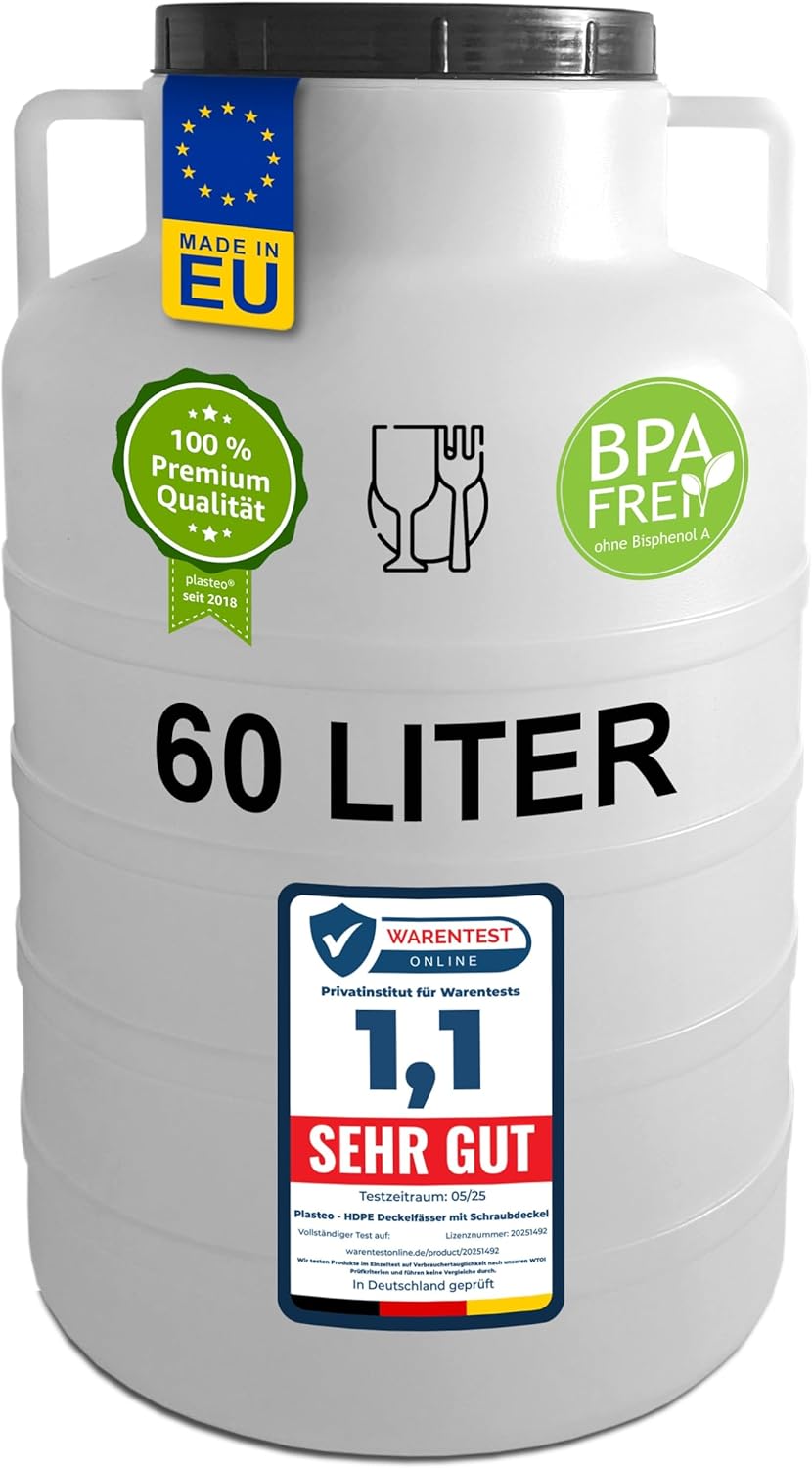 Plasteo® 60 Liter Weithalsfass Natur Rund mit Deckel und Henkeln, Lebensmittelecht und BPA-Frei, Fut