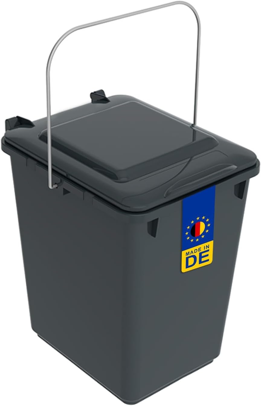 plasteo/Weber Bio Boy 10 Liter mit Deckel und Henkel – Grau – Langlebig und leicht Abwaschbar – Als