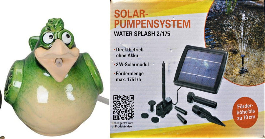 powershop11 Wasserspeier Frosch 16 cm dk.grün mit Solarpumpe Solaris 170