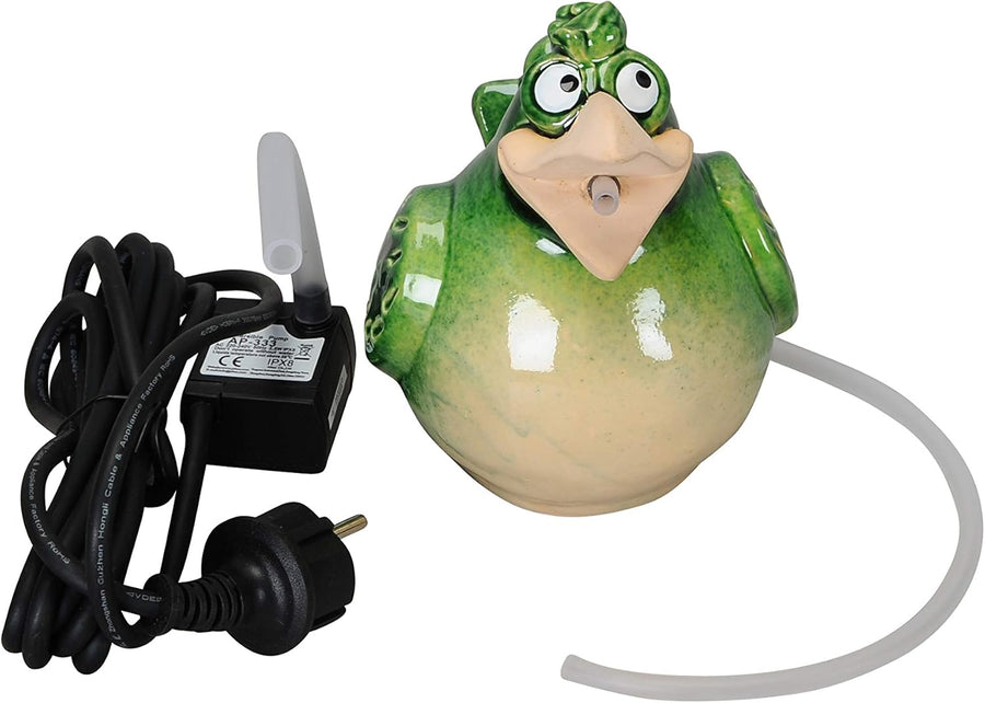 Wasserspeier Vogel grün mit Pumpe 17 cm