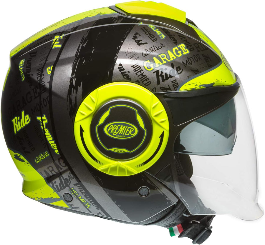 Premier Erwachsener Motorradhelm Jethelme für Unisex-Erwachsene, Schwarz, Polycarbonat (PC), Kunstst