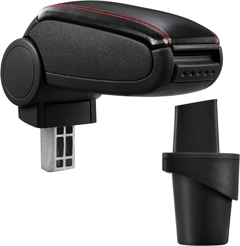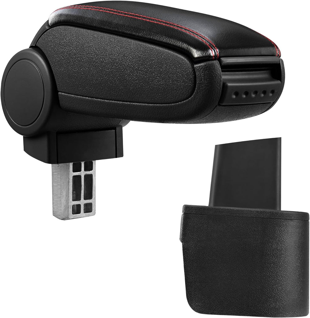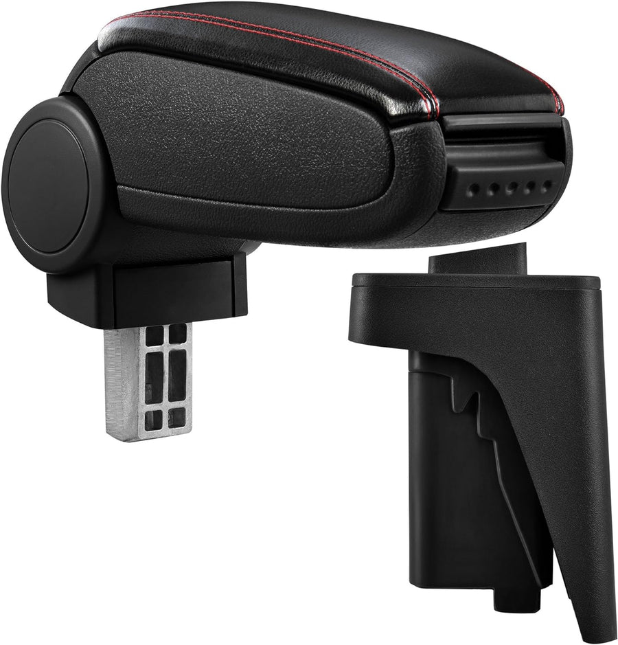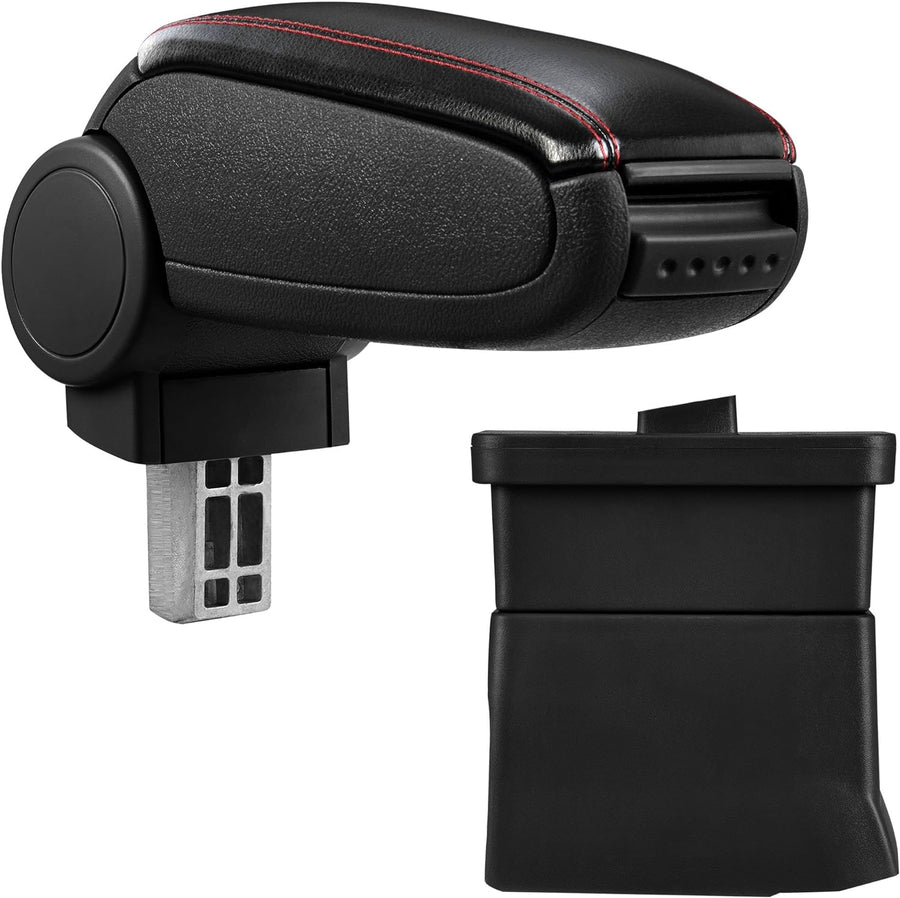 pro.tec] Mittelarmlehne - Armauflage mit Staufach - gepolstert - schwarz Kunst-Leder mit roten Nähte