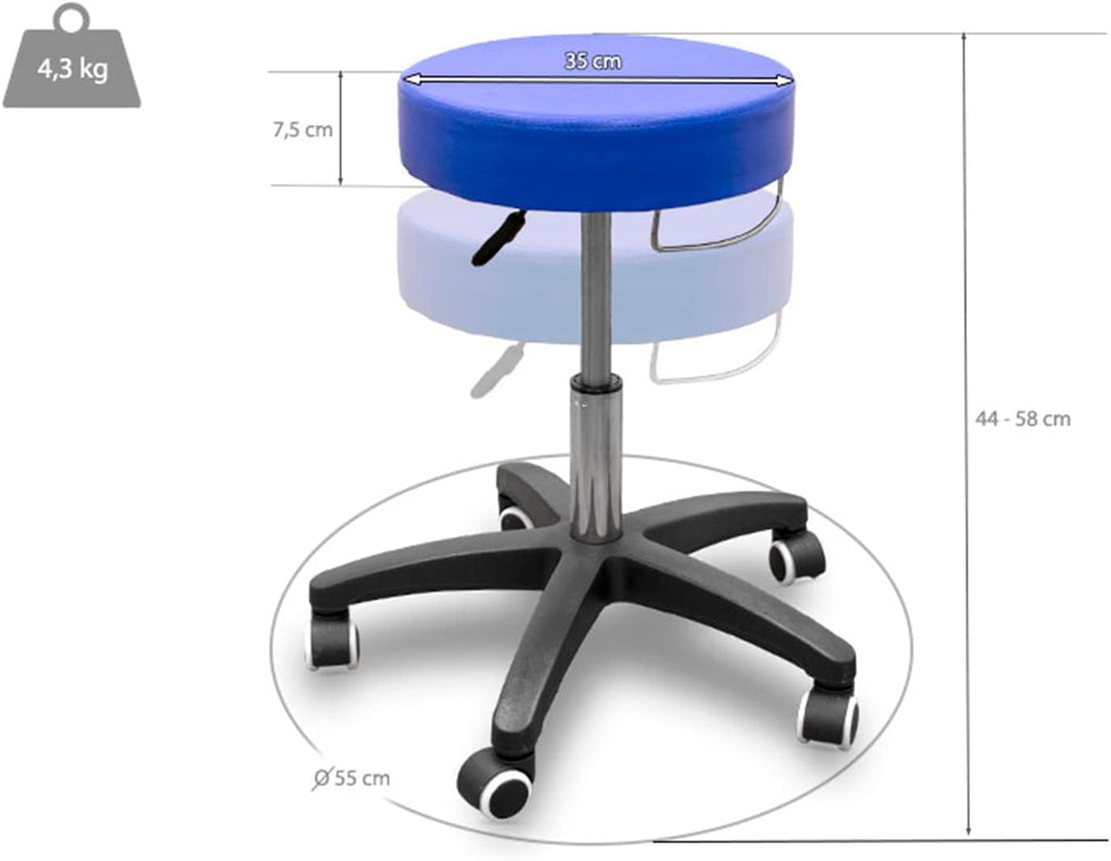 QUIRUMED Hocker mit Rückenlehne, Gaslift, mit 5 Rädern, Blaue Farbe, Polsterung aus hochdichtem Kuns