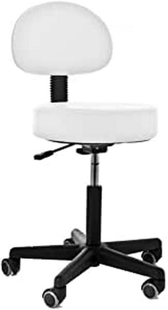 QUIRUMED Hocker mit Rückenlehne, Gaslift, mit 5 Rädern, weisse Farbe, hochdichte Kunstlederpolsterun