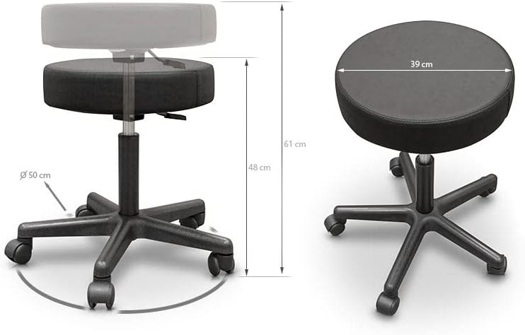QUIRUMED Hochhocker, gepolstert mit Kunstleder, Schwarze Farbe, Gasfeder, mit 5 Rädern, drehbar, hoc