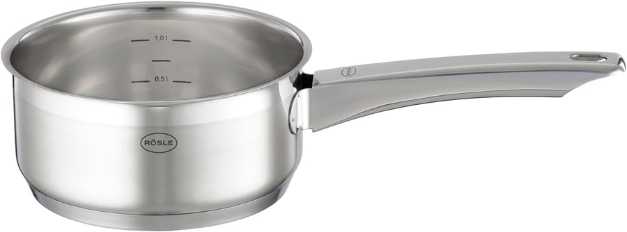 RÖSLE Basic Line Topf-Set 4-tlg., 3 Universaltöpfe, 1 Stielkasserolle, Edelstahl 18/10, mit Glasdeck