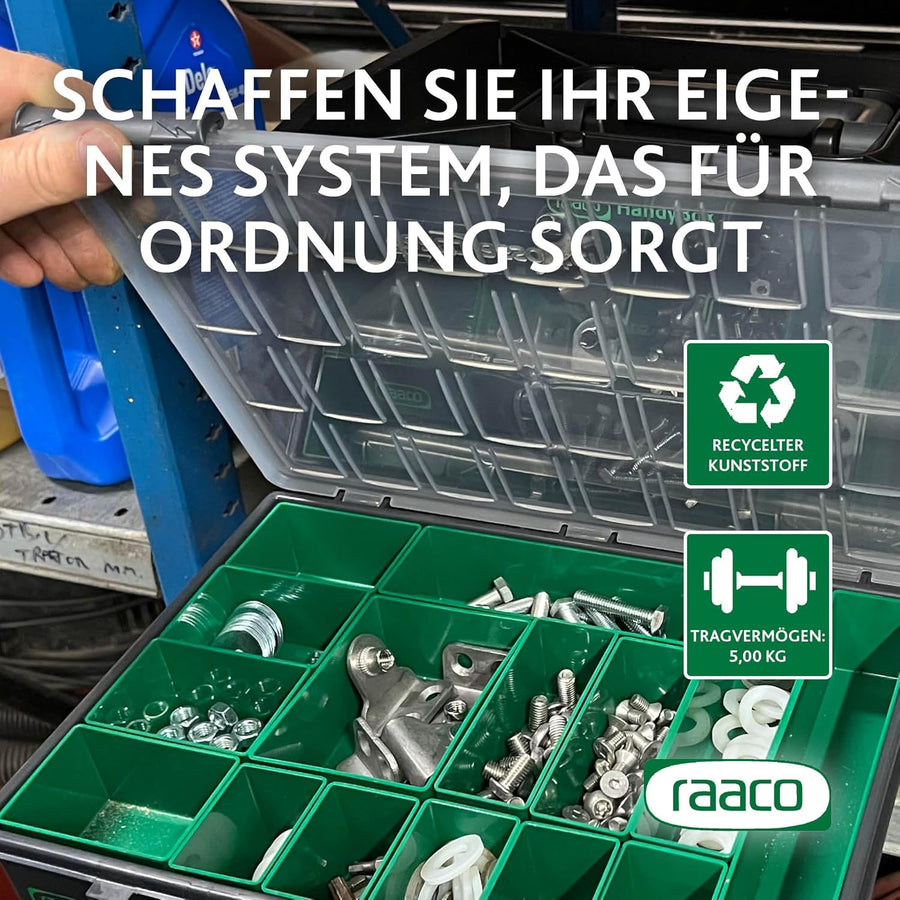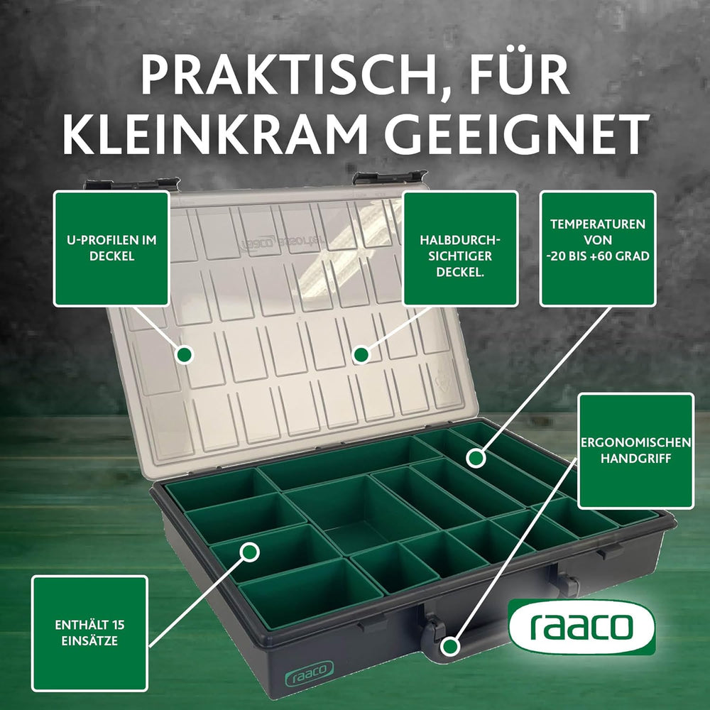 raaco Assorter 55 4x8-15: Premium Sortierbox für Werkstatt, 15 Einsätze, Sortimentskasten & Sortierb