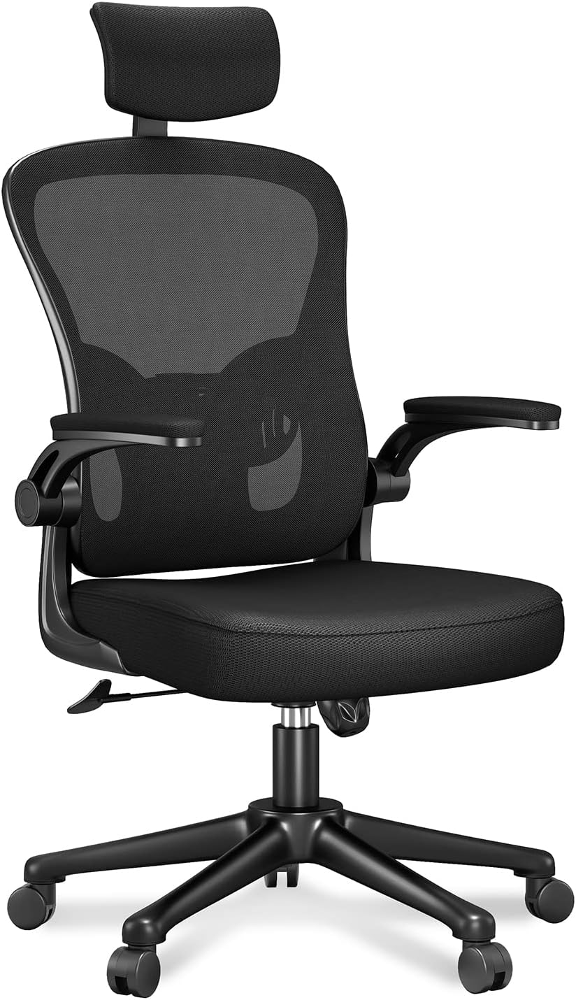 rattantree Bürostuhl mit Hochklappbaren Armlehnen, Ergonomischer Schreibtischstuhl mit Lendenwirbels