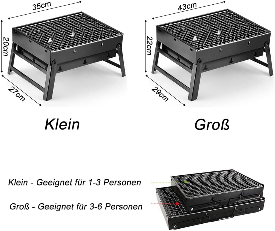 ROIMOE Holzkohlegrills Grill BBQ Portable, Tischgrill Campinggrill Picknickgrill, Abnehmbare BBQ Gri