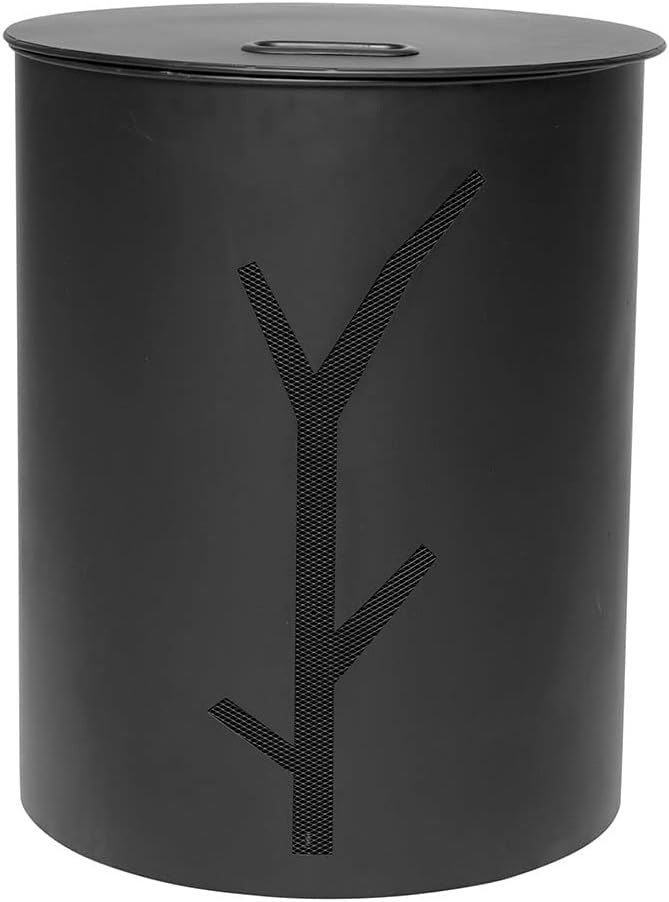 RUECAB - Pelletbox, Holzpellet, runde Pellets für Ofen, Eimer aus Metall mit Deckel, schwarzer Korb