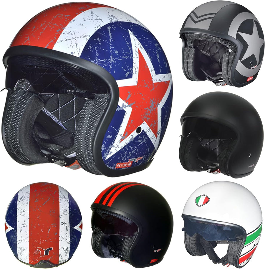 RC-583 Jethelm Motorradhelm Chopper Jet Motorrad Roller Bobber Helm rueger, Grösse:XS (53-54), Farbe