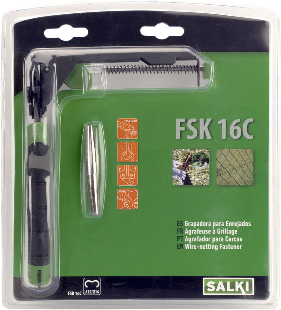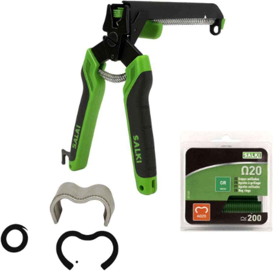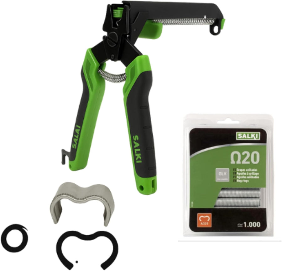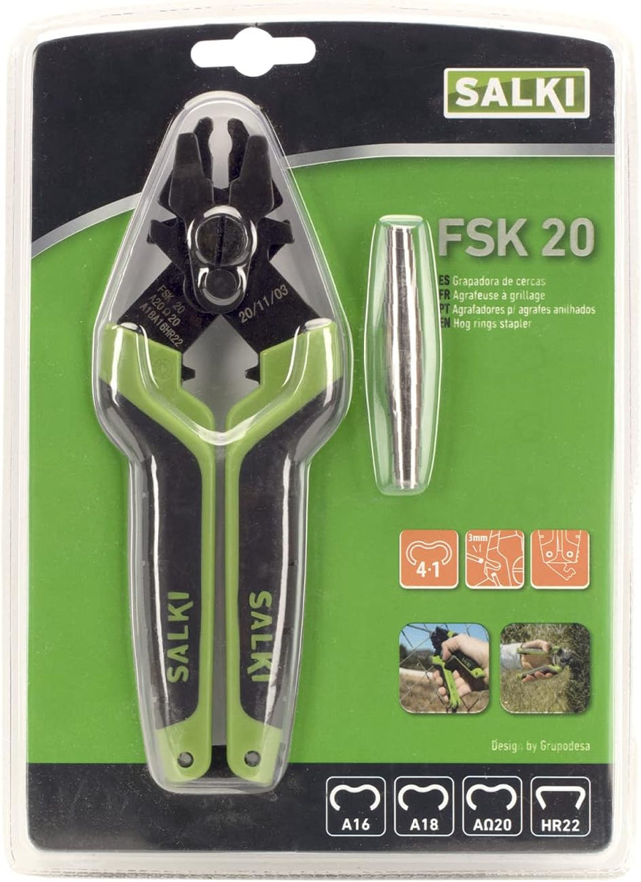 SALKI Heftklammer-Set mit Ladegerät FSK20C - Zaunzange mit eingebautem Drahtschneider + Blister mit
