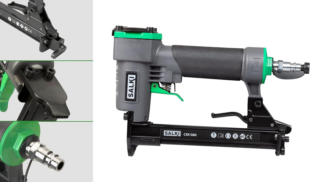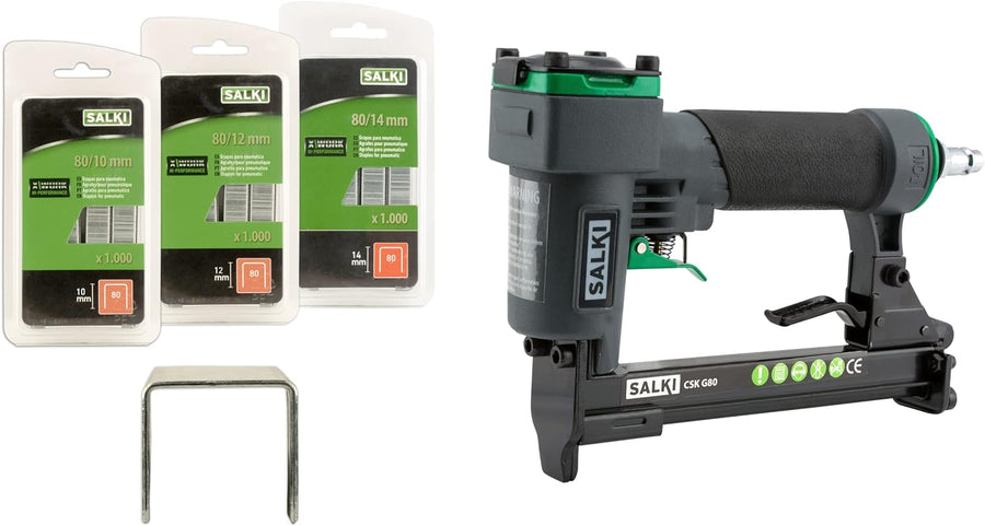 SALKI Pack Hefter CSK G80 + Heftklammern 80-10mm, 80-12mm und 80-14mm - Pneumatisches Heftgerät für