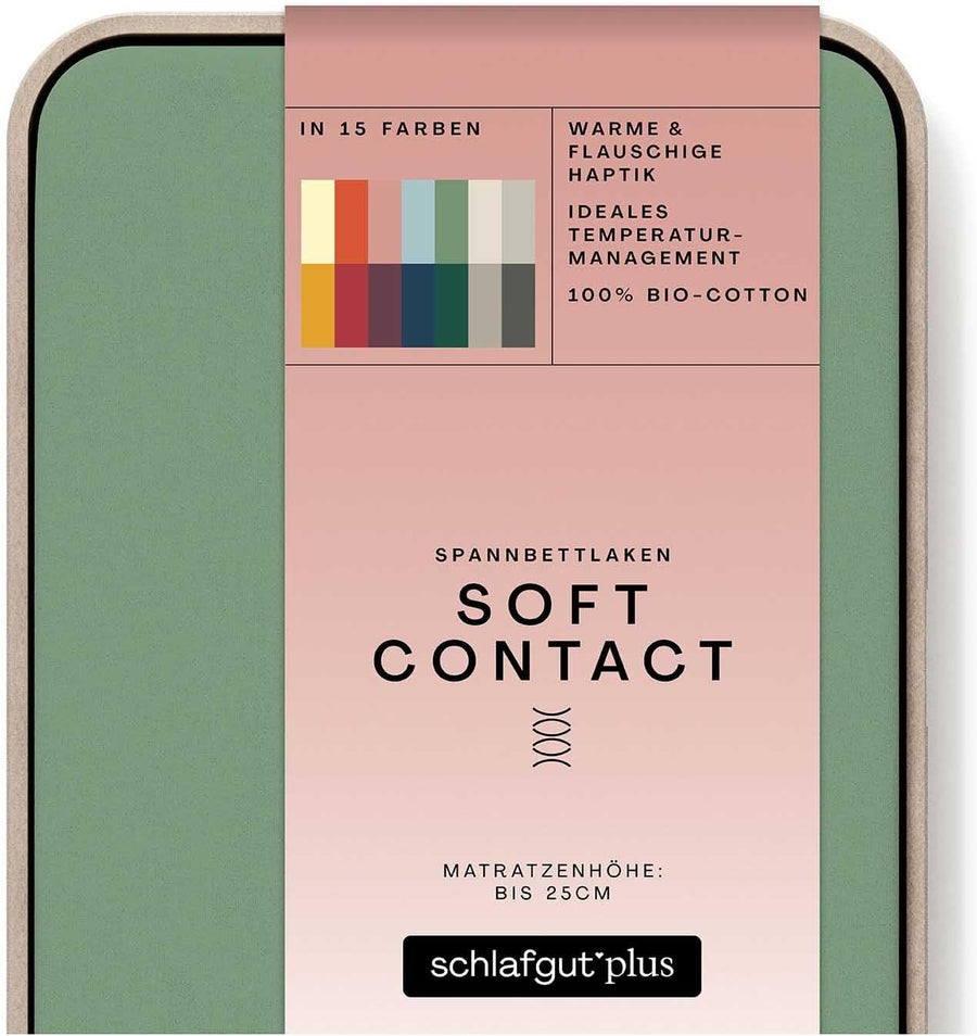 schlafgut Soft Contact Spannbettlaken bis 100x200cm, Green Mid aus 100% Biobaumwolle wärmend Green M