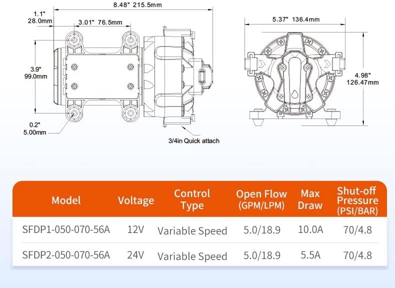 SEAFLO 12 V 56 A Serie Variable Speed Smart On Demand Marine/RV 5-Kammer-Membranpumpe