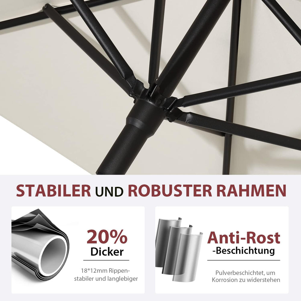 Sekey® 180cm Sonnenschirm | Gartenschirm für Terrasse,Balkon & Garten,Windfest Kippbar Creme UPF 50+