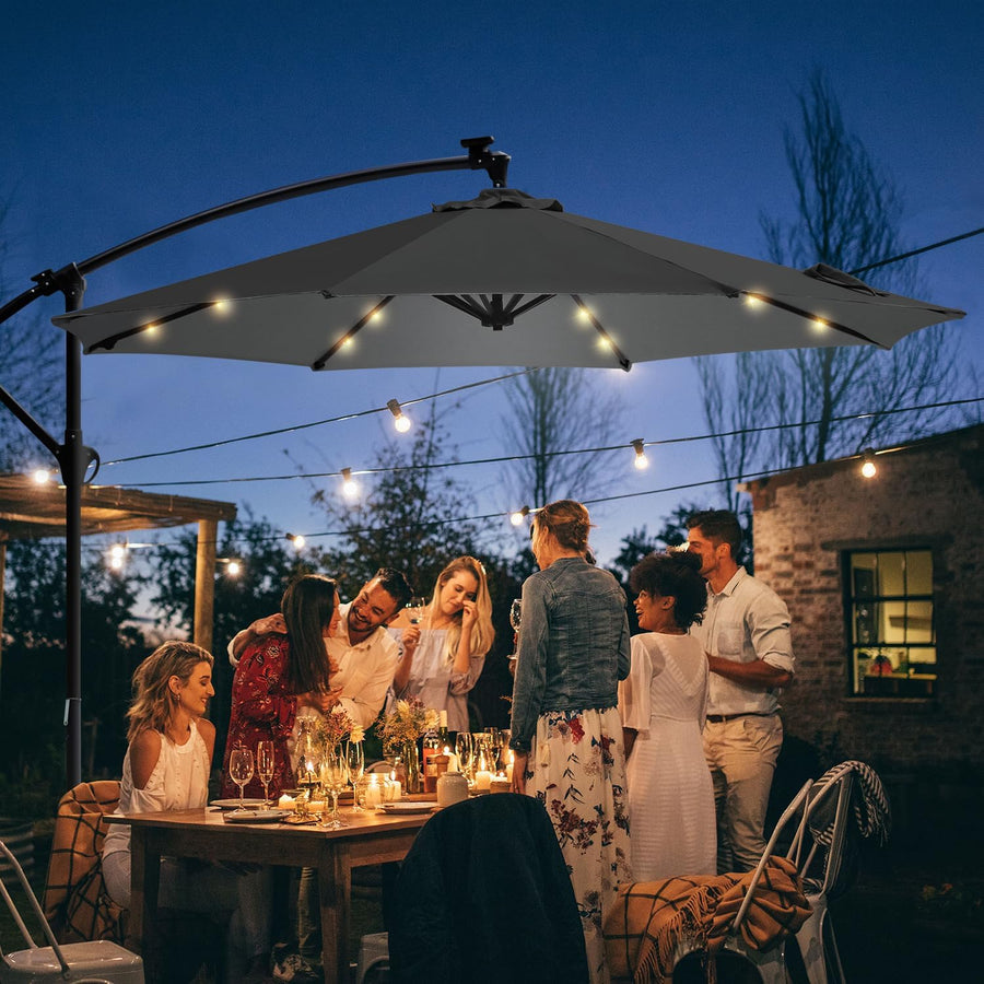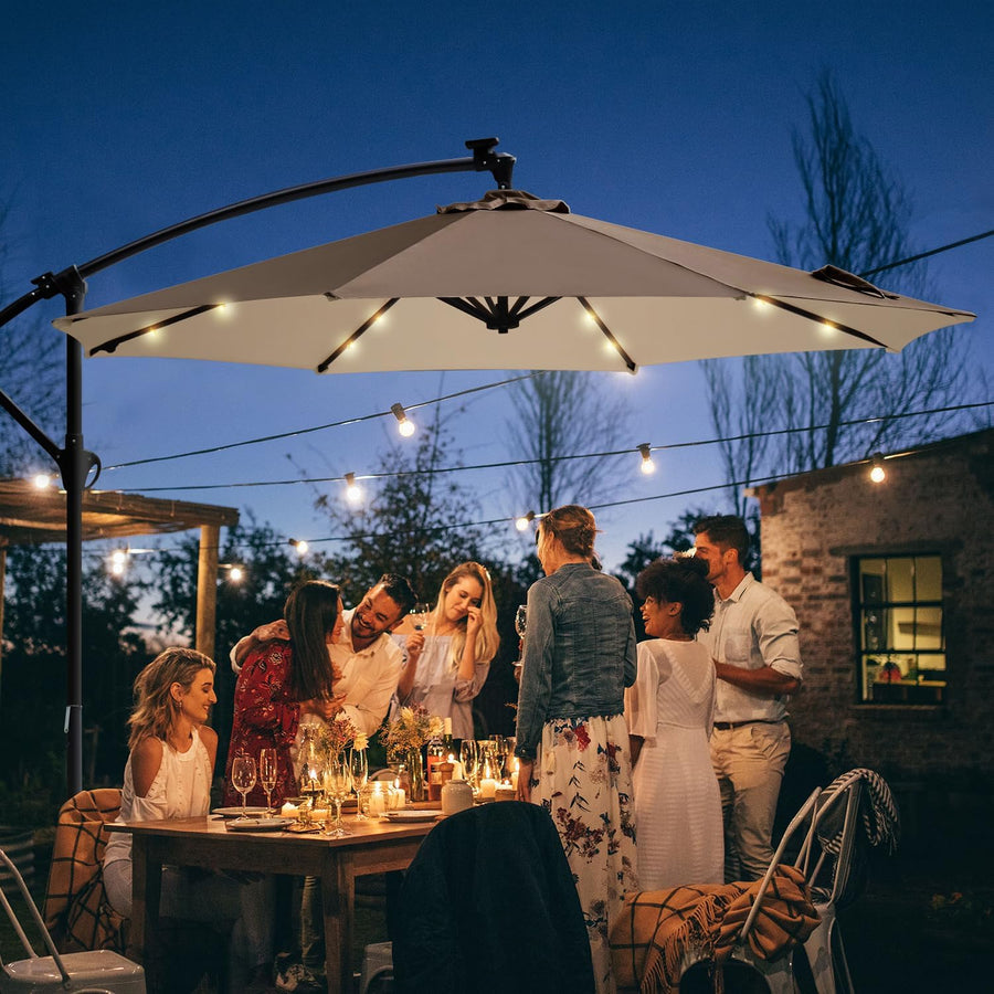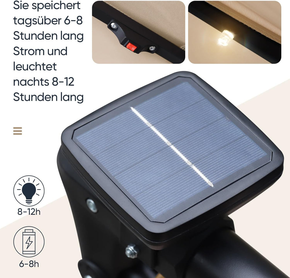 Sekey LED Solar Ampelschirm 300cm LED Sonnenschirm-Solarbetrieben - UV50+ Sonnenschutz - Robust und