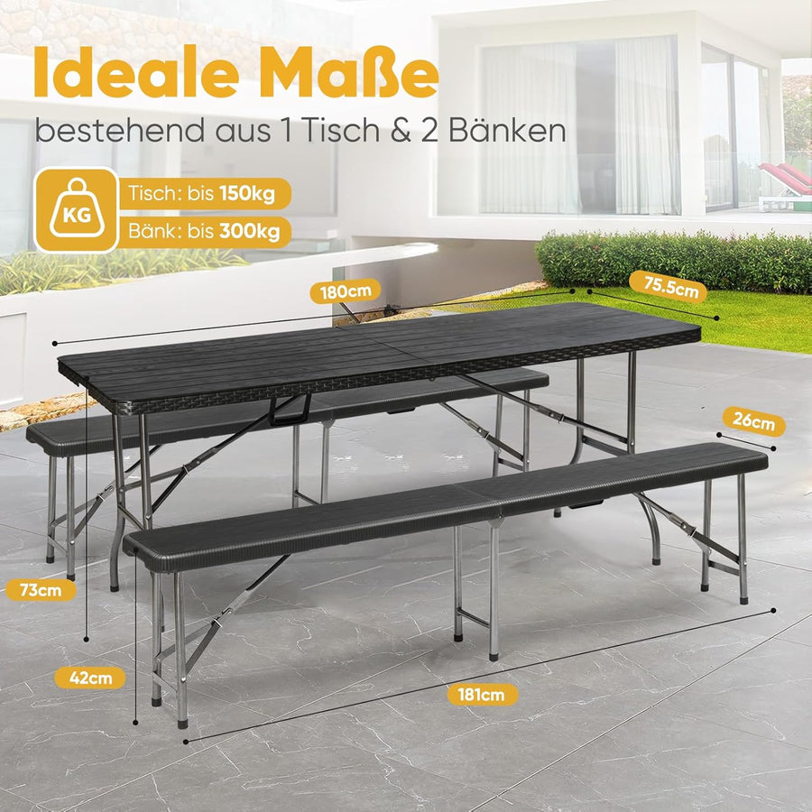 Sekey Bierzeltgarnitur Klappbar Campingtisch Set, 2 x Bierbänke & 1 x Biertisch, 180cm Biertischgarn