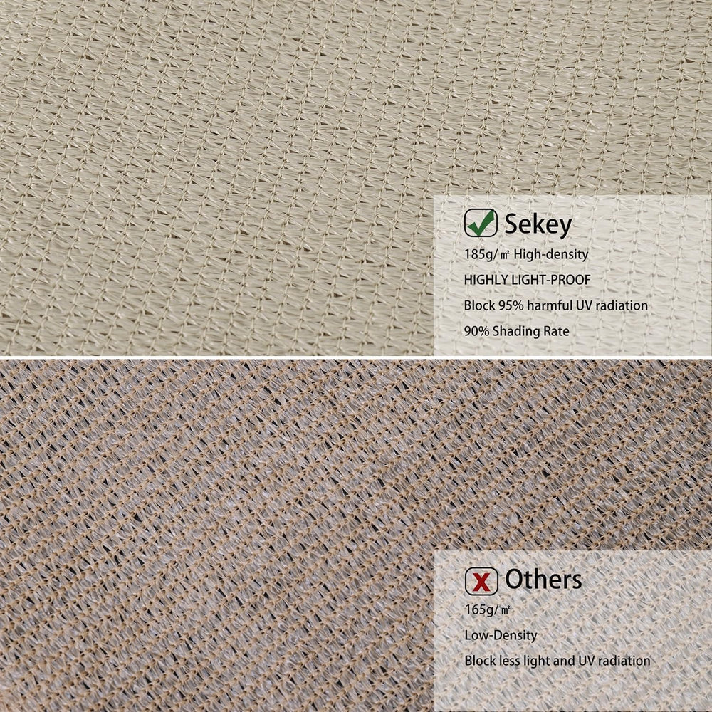 Sekey Sonnensegel 2x2m, Sonnenschutz, Quadratisch HDPE-Kunststoff, Winddicht Wasserdurchlässig UV-be