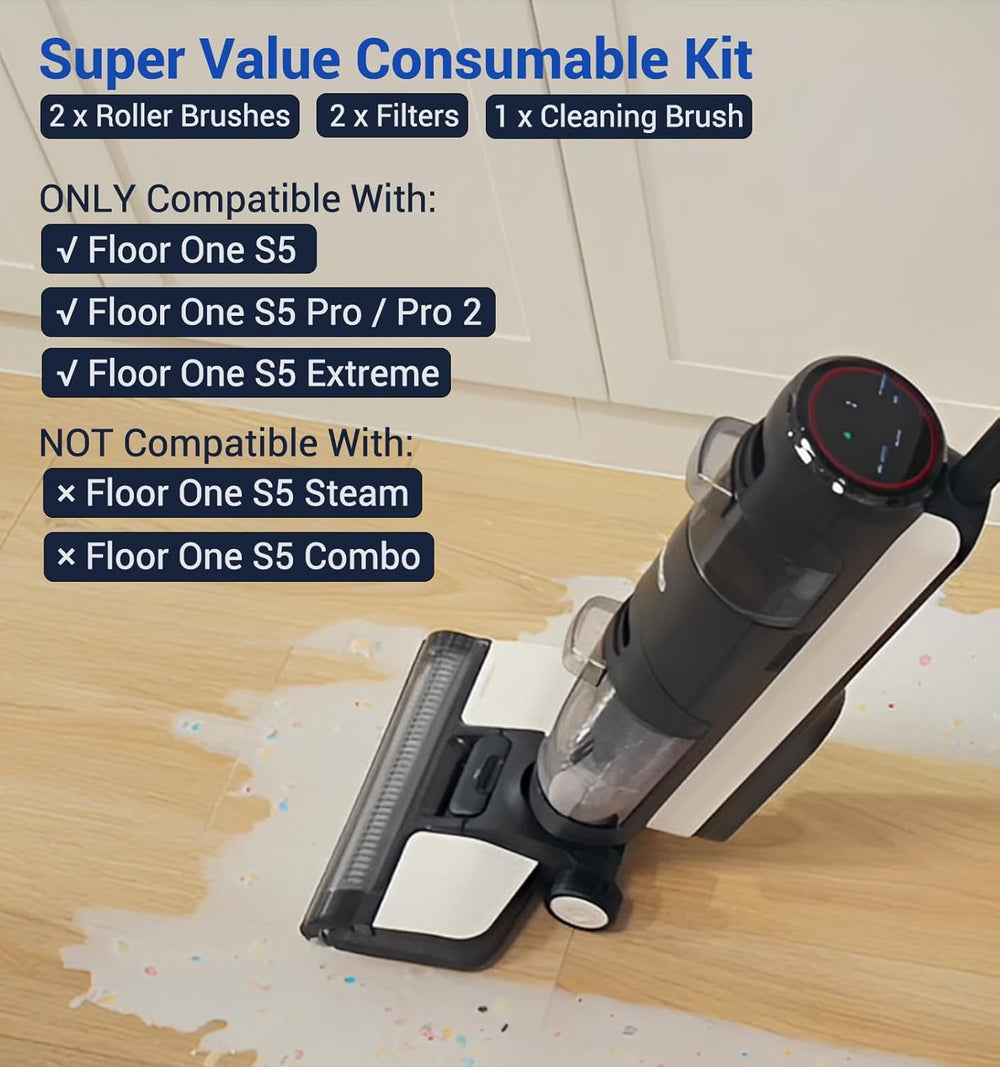 Bürstenrolle und Filter Ersatzteile kompatibel für Tineco Floor One S5/S5 Pro/S5 Pro 2/S5 Extreme, 2