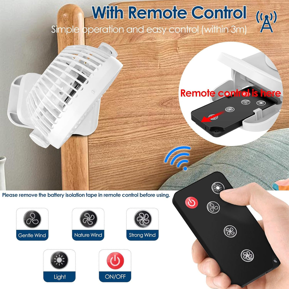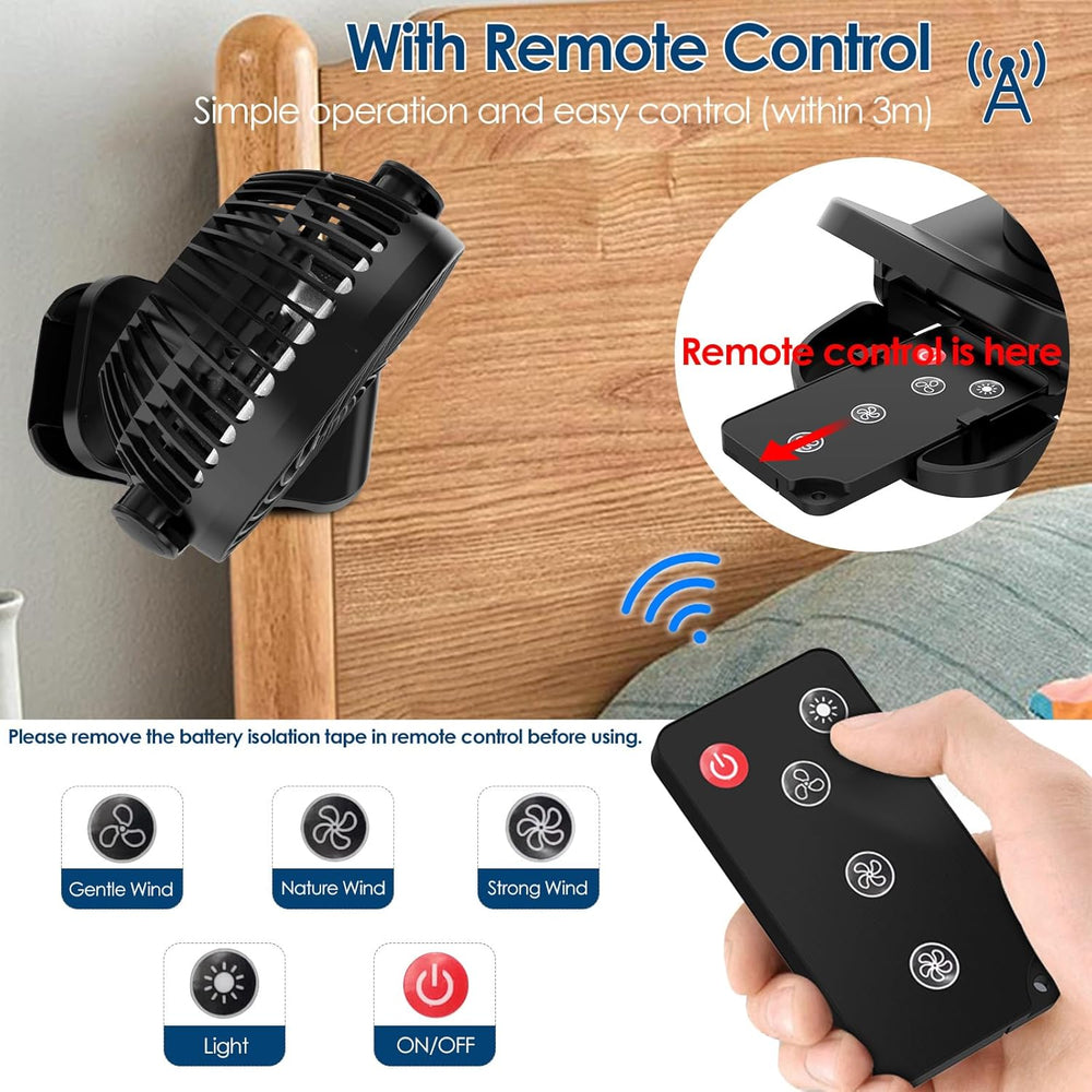 Simpeak 8000mAh Camping Ventilator Tischventilator, Mini USB Ventilator leise, Clip Fan mit Fernbedi