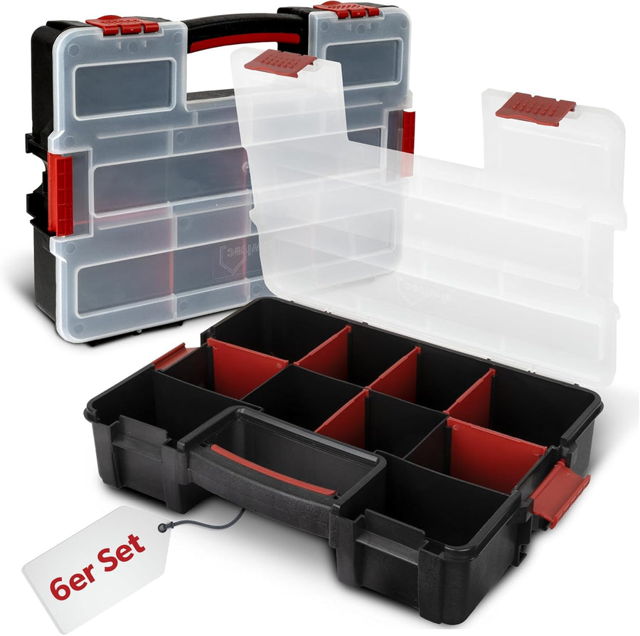 6 x siwitec Sortimentskasten, 10 Fächer und 6 anpassbare Trennstege, stapelbar, Sortimentsbox Kleint