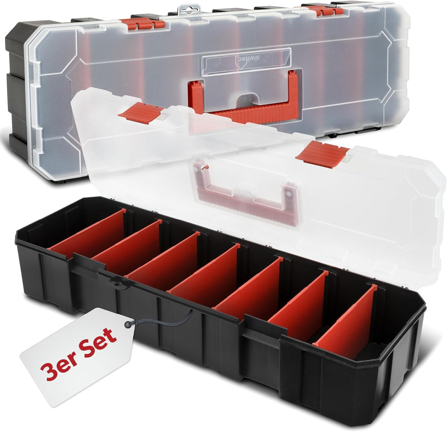 3 x siwitec Sortimentskasten mit 8 Fächern und 7 anpassbaren Trennstegen, Sortimentsbox für Kleintei