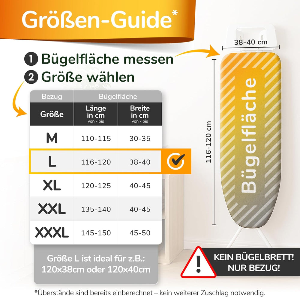 smart&gentle Turbo Bügelbrettbezug 150x50 in 5 Grössen für Dampfbügeleisen Designed in Germany - Büg