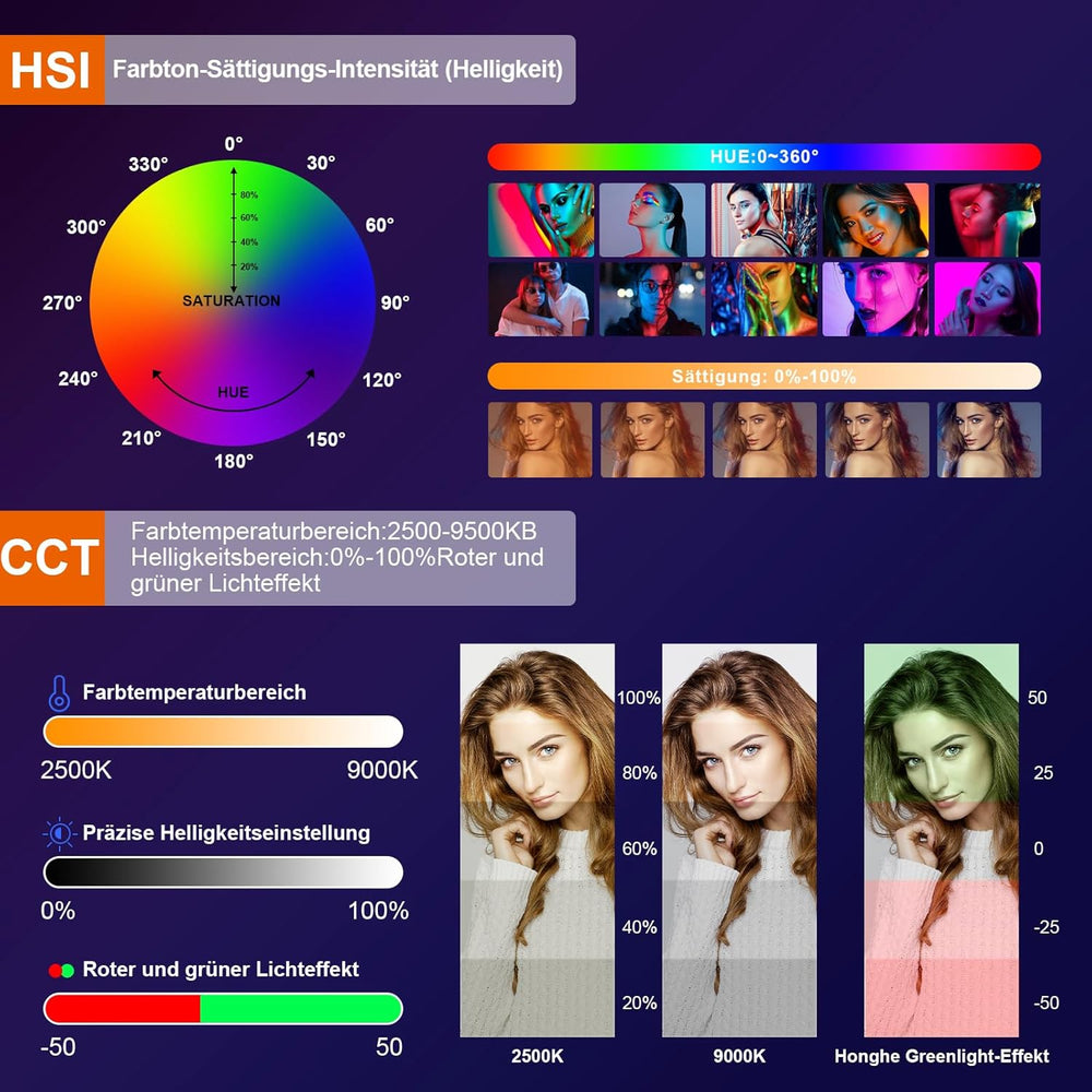 LED Videoleuchte RGB, LED Videolicht Aluminium USB Wiederaufladbarem LED Video Licht mit 4400 mAh Ak