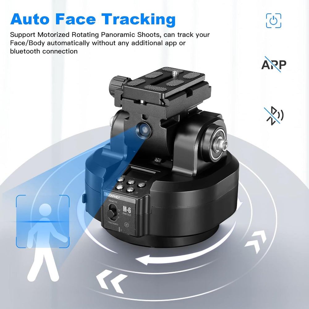 Soonpho M6 Auto Face Tracking Motorized Rotating Panoramic Tripod Head, AI Smart Face Body Tracking