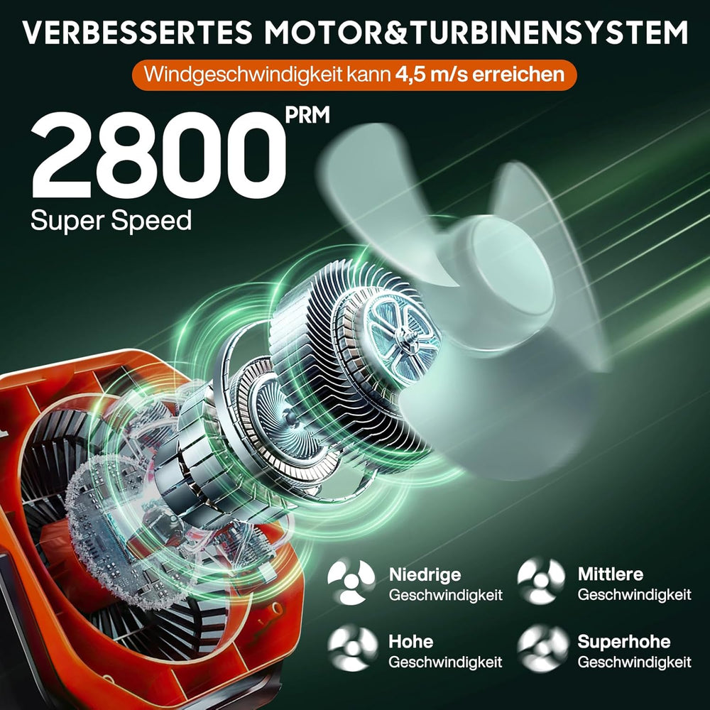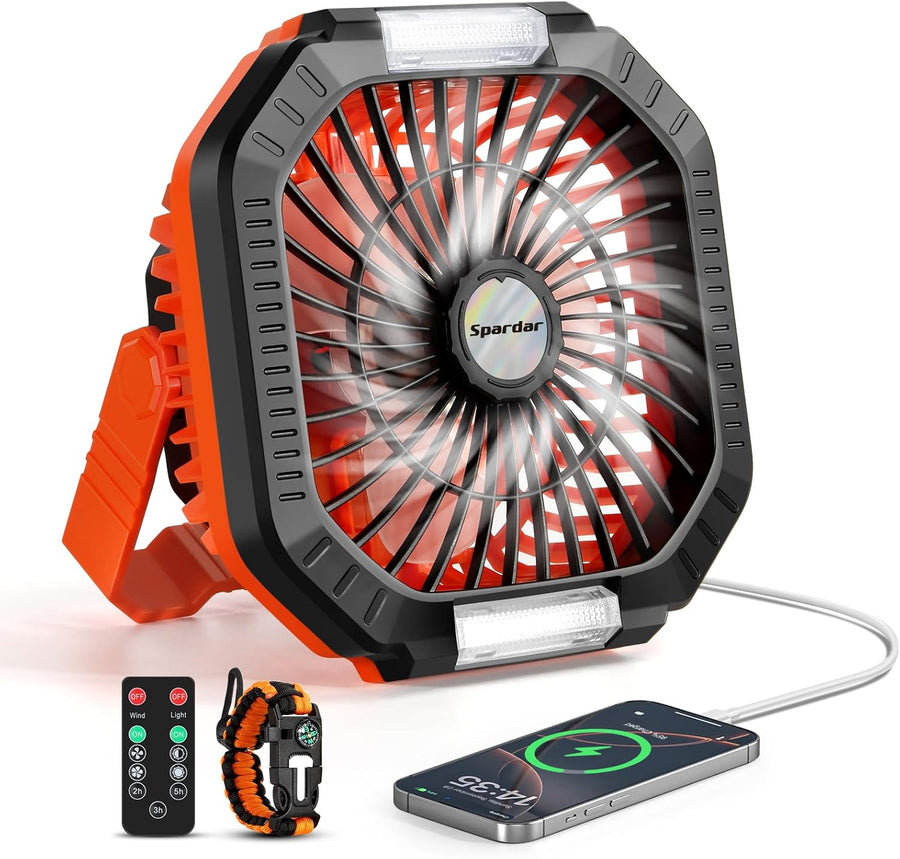 Camping Ventilator, 10000 mAh Ventilator USB-Tischventilator mit Licht, Haken und Paracord-Armband,