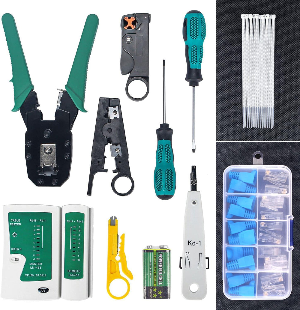 Spardar Netzwerk Werkzeug Set, professionelles 13-in-1-Netzwerk Reparaturwerkzeug mit Abisolierzange
