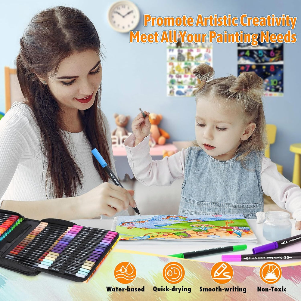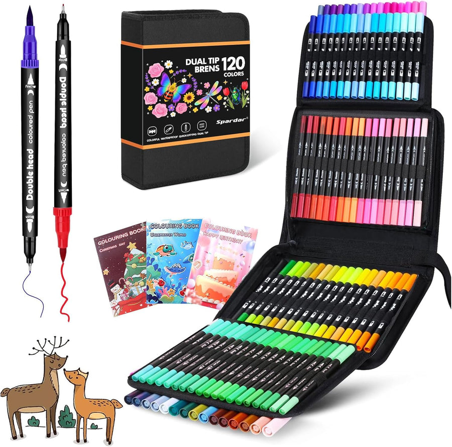 Spardar 120 Filzstifte, Filzstifte Dicke und Dünne, Doppelspitze Mit Schwarzer Tragetasche Und 3 Mal