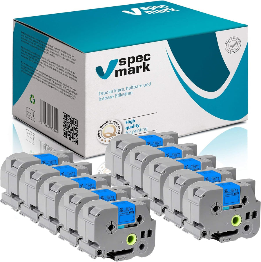 specmark Schriftband TZe-561 36mm x 8m Satz x 10 St. Schwarz auf Blau Band kompatibel mit Drucker Br