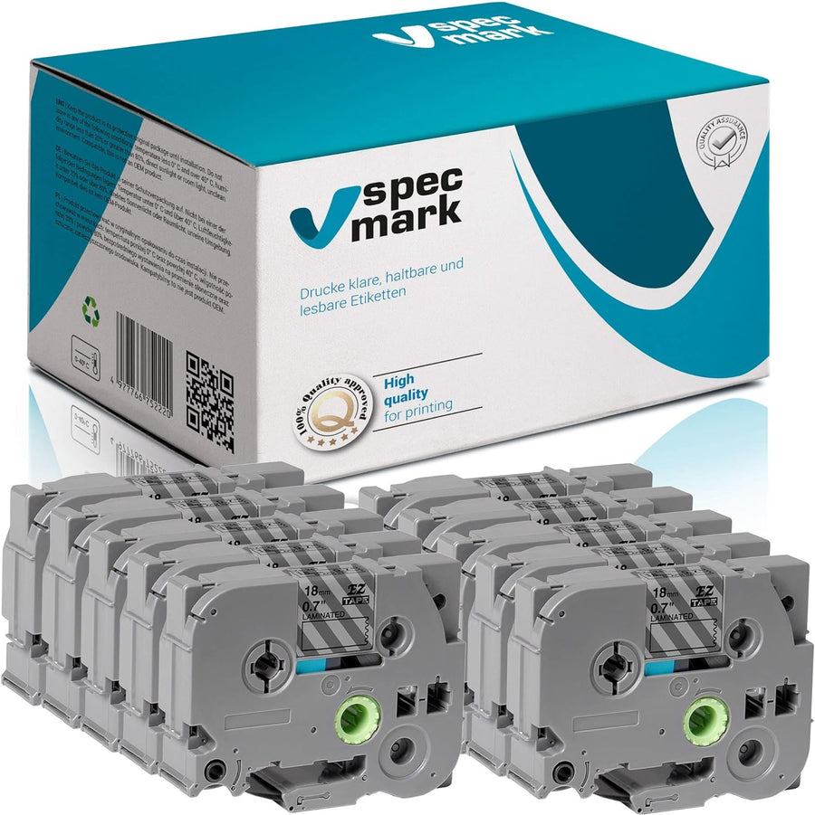 specmark Schriftband TZe-141 18mm x 8m Satz x 20 St. Schwarz auf Durchsichtig Band kompatibel mit Dr