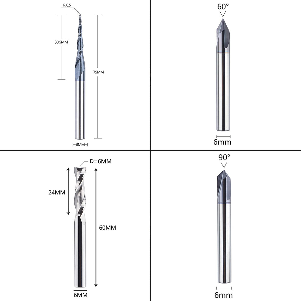 SpeTool 4 Stück Fräser Set 6 MM Schaft Vollhartmetall VHM CNC Fräser V-Nutfräser für Holz Gravur