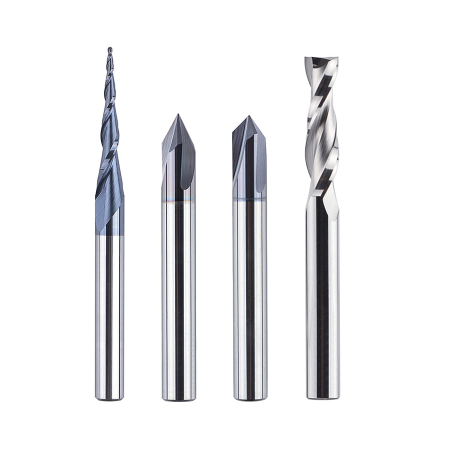 SpeTool 4 Stück Fräser Set 4mm Schaft Vollhartmetall VHM CNC Fräser V-Nutfräser Schaftfräser Holzfrä
