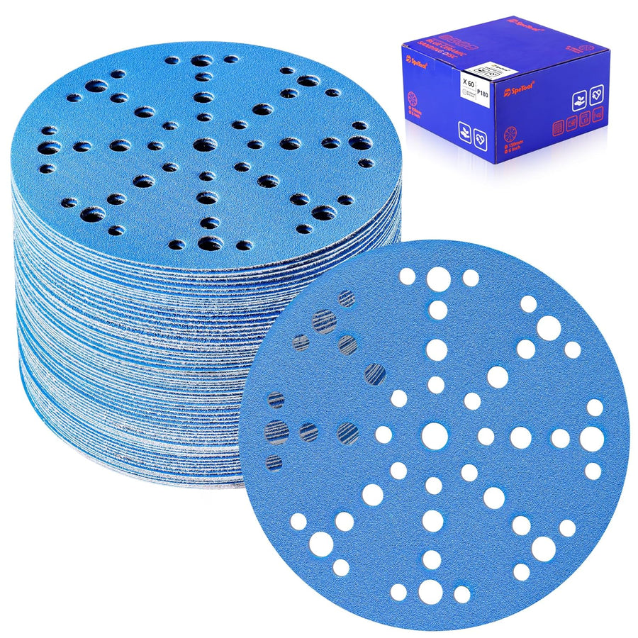 SpeTool Schleifpapier 150mm Klett mit 49 Löchern 60 Stück Set Schleifpapier 180 körnung Keramik Schl