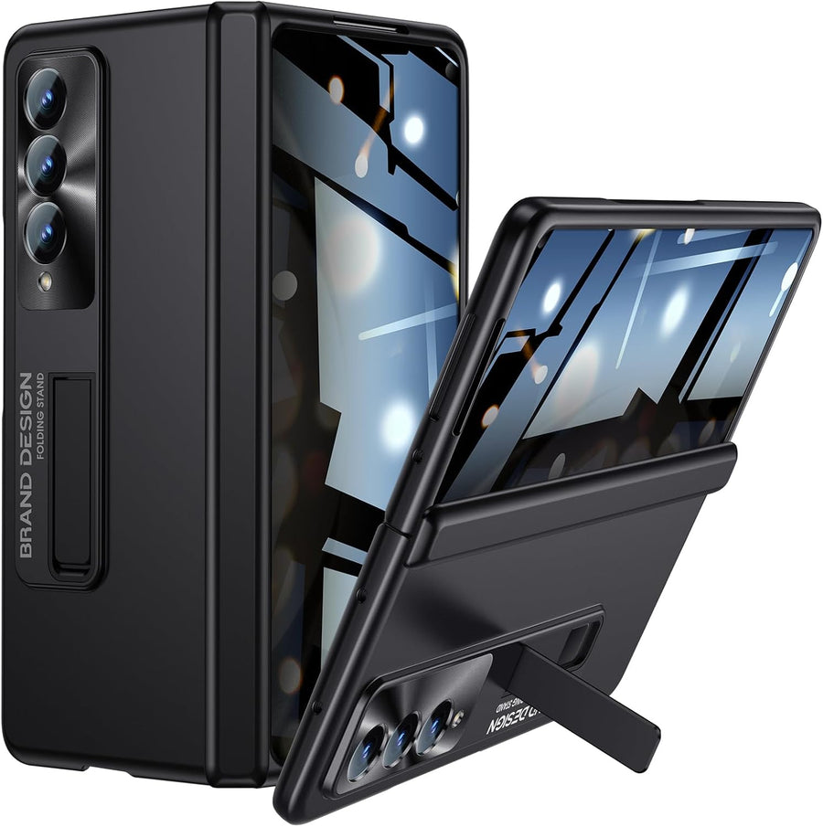 for Samsung Galaxy Z Fold 4 Ständer Hülle mit Privatsphäre Bildschirmschutz, Scharnier Schutz, Displ