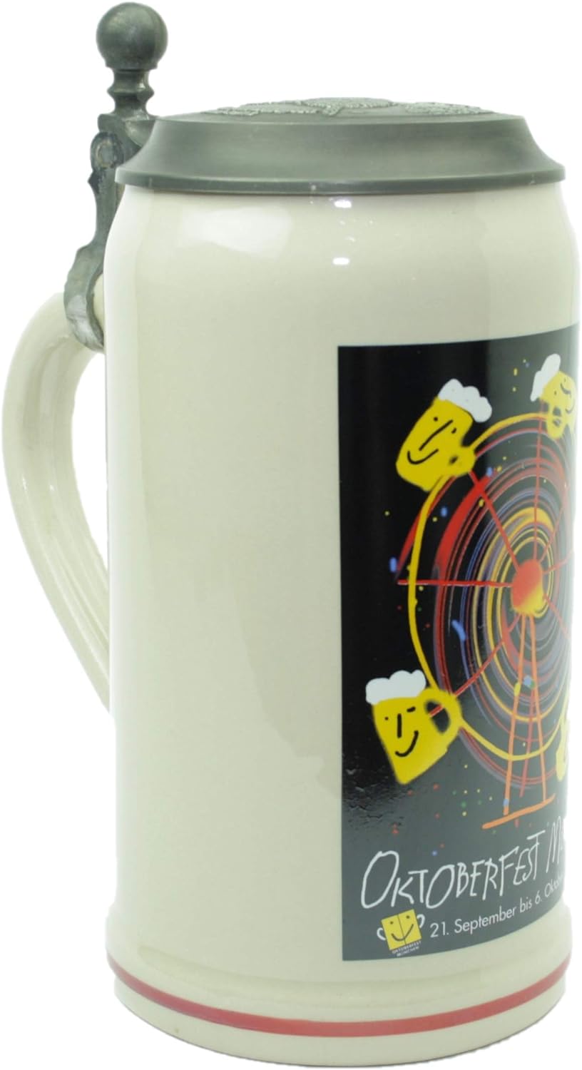 Steinfixx® - Original Oktoberfestkrug 1999 mit Zinndeckel und Zertifikat I Jahrgangskrug I Jahreskru