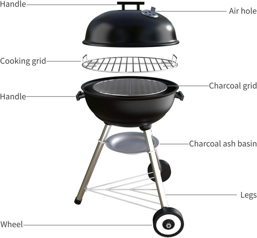 SunJas Holzkohlegrill, tragbar, rund, Deckel, Doppelräder, Grill auf Standfuss, φ 41 cm, Höhe 70 cm,