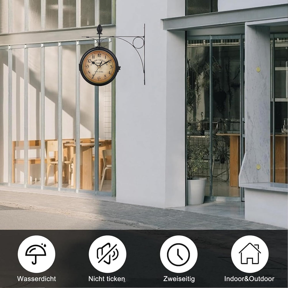 Syfunlv Vintage Bahnhofsuhr,Zweiseitige Wanduhr,21,8 * 21,8 cm,Wetterfest, Runde Wanduhr für Garten,